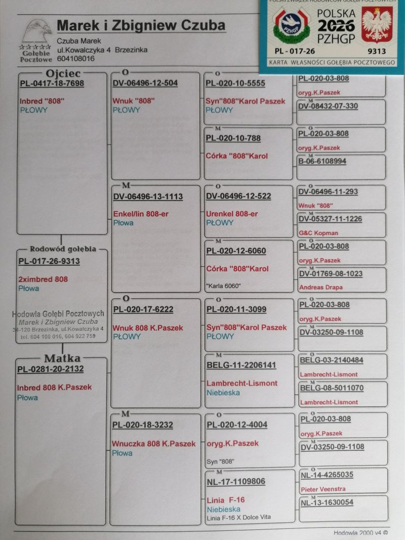 Płeć: młody gołąb Hodowca - rasa: Oryg Czuba Marek Zakończenie: 4.05.2026 godz. 20:25