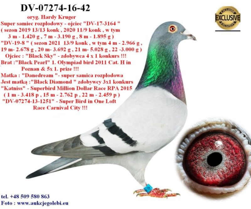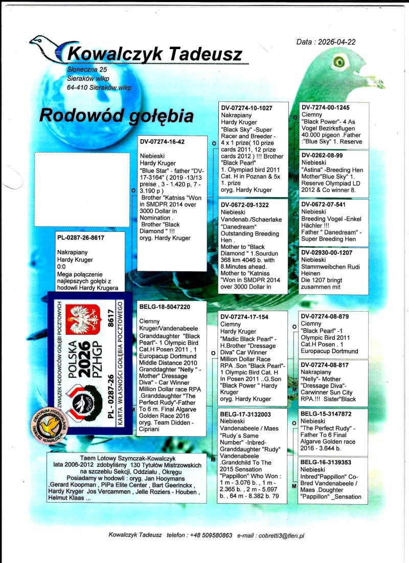 PL-0287-26-8617 Potomek najlepszych gołębi z hodowli Hardy Krugera