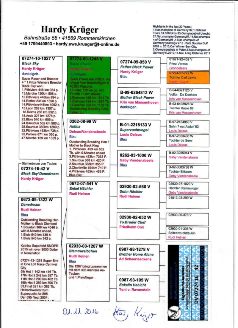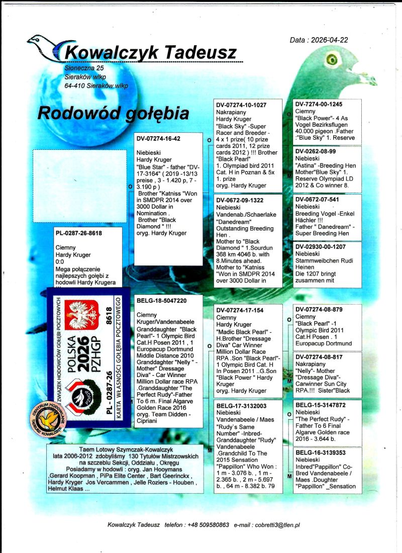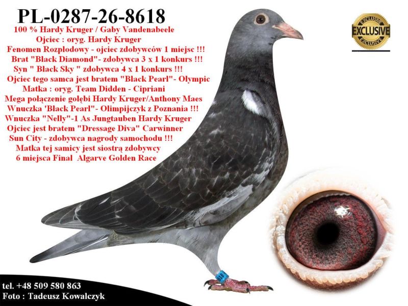PL-0287-26-8618 Potomek najlepszych gołębi z hodowli Hardy Krugera