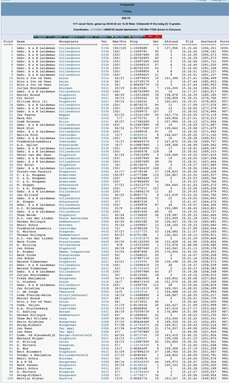 PL-0287-26-8630 Mega połączenie gołębi Willem de Bruijn & Bracia Leideman