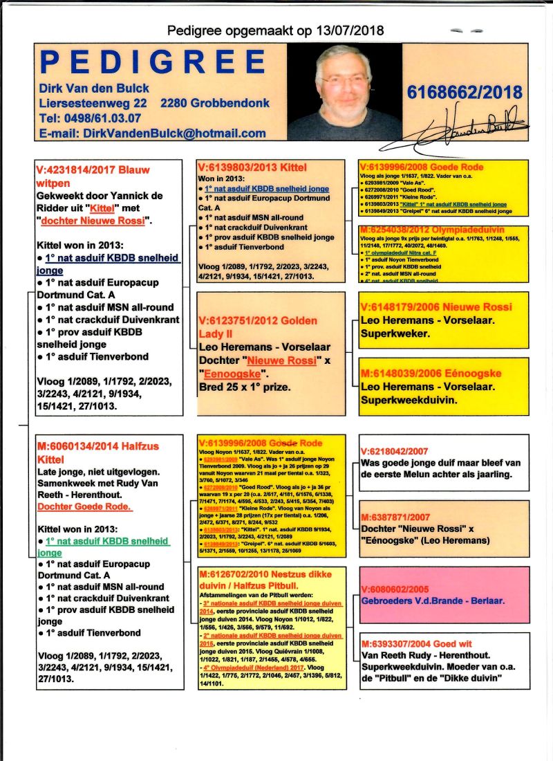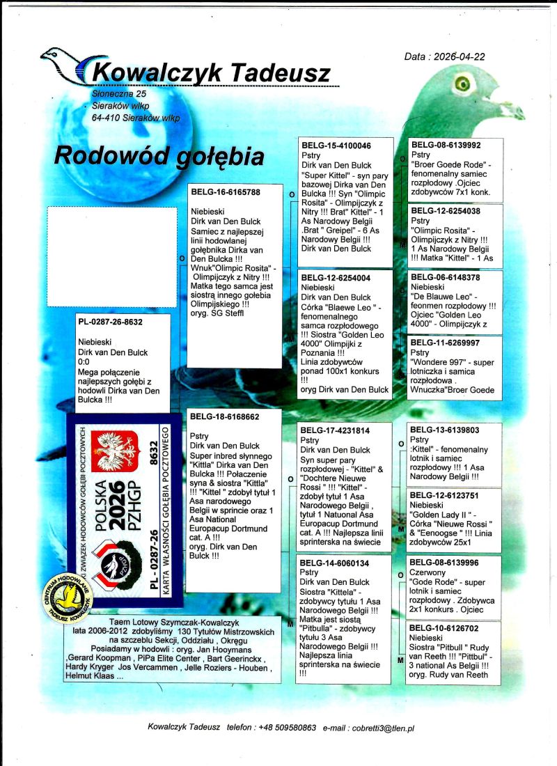 PL-0287-26-8632 Mega połączenie najlepszych gołębi z hodowli Dirka van Den Bulcka