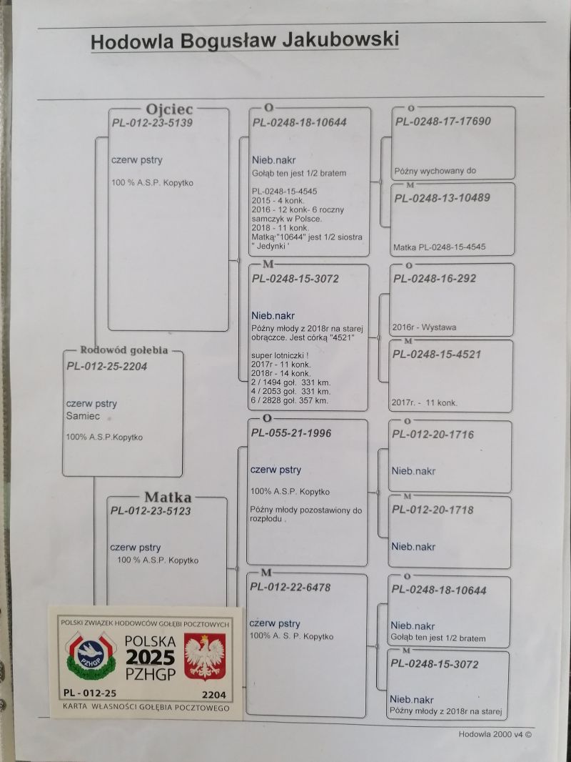 Płeć: młody gołąb Hodowca - rasa: Oryg Czuba Zbigniew Zakończenie: 6.05.2026 godz. 21:05
