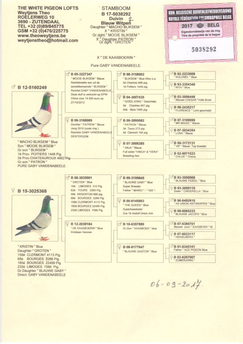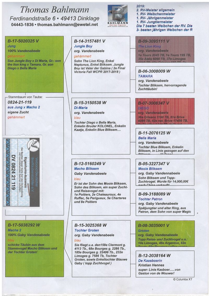 Oryginalny gołąb z hodowli Thomasa Bahlmanna. oferowany goląb to prawdopodobnie samiec. Szczegóły pochodzenia w rodowodzie. Więcej informacji pod nr tel.504780725