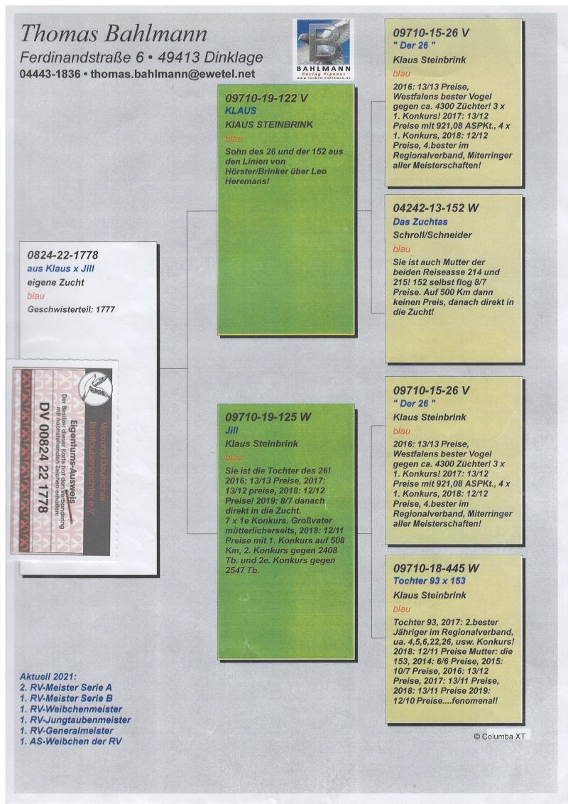 DV-0824-22-1778 100% Klaus Steinbrink - inbred "DER 26"