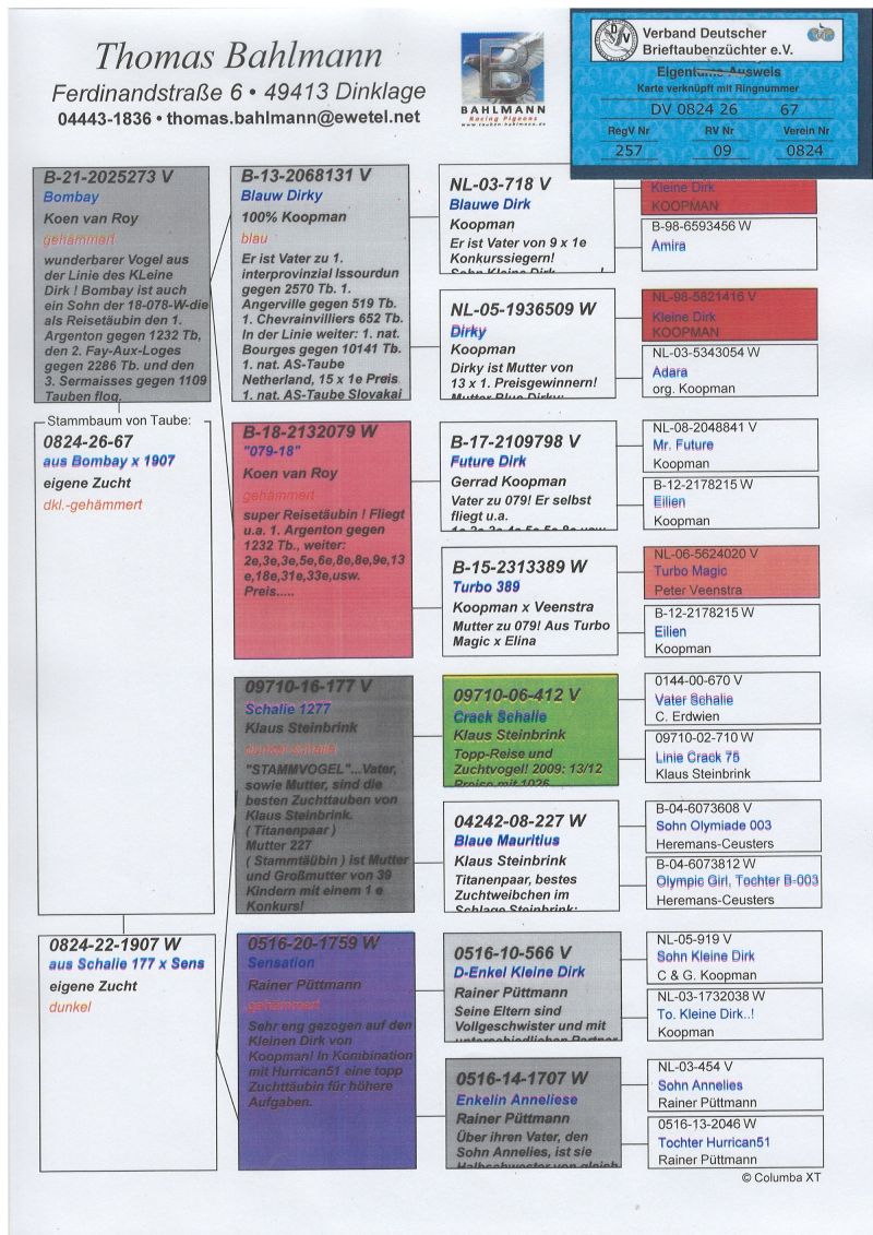 Oryginalny gołąb z hodowli Thomasa Bahlmanna. oferowany gołąb to prawdopodobnie samica. Szczegóły pochodzenia w rodowodzie. Więcej informacji pod nr tel.504780725