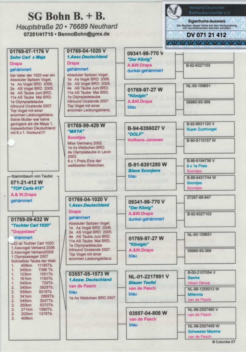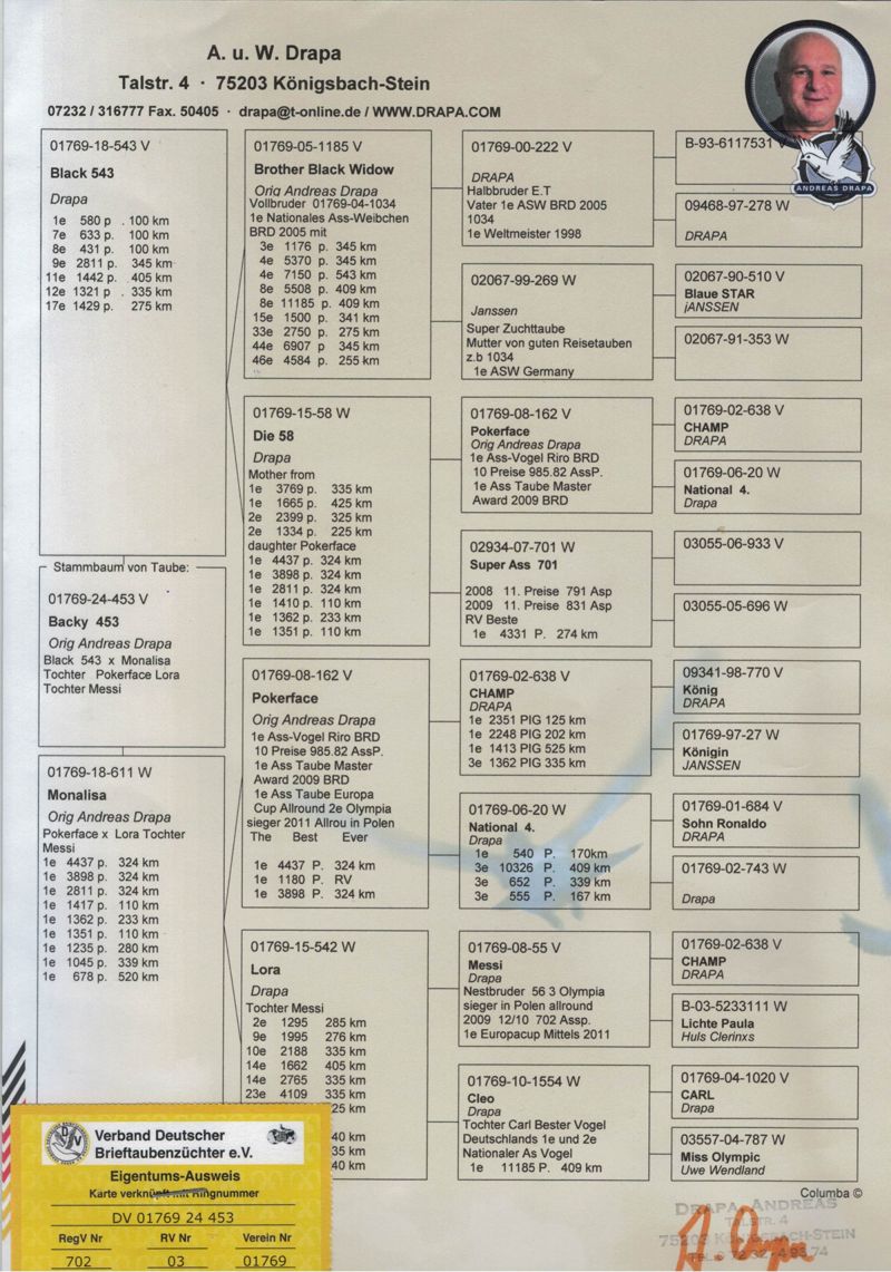 Oryginalny gołąb z hodowli Thomasa Bahlmanna. oferowany gołąb to prawdopodobnie samiec. Szczegóły pochodzenia w rodowodzie. Więcej informacji pod nr tel.504780725