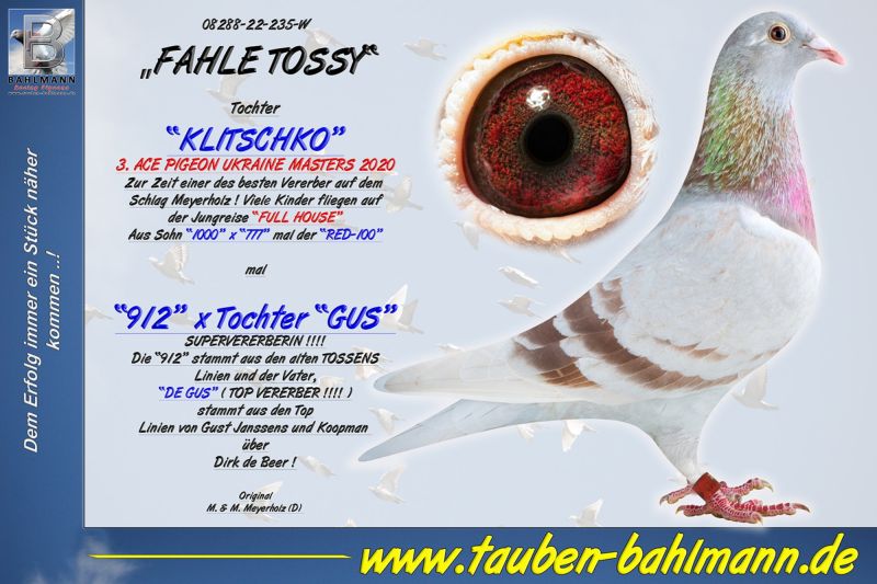 Oryginalny gołąb z hodowli Thomasa Bahlmanna. oferowany gołąb to prawdopodobnie samiec. Szczegóły pochodzenia w rodowodzie. Więcej informacji pod nr tel.504780725